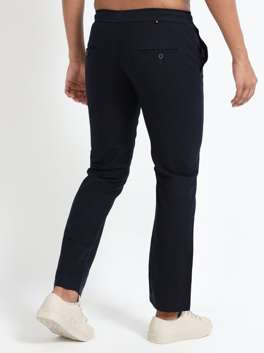 LINEN COTTON REGULAR FIT PANTS NAVY BLUE