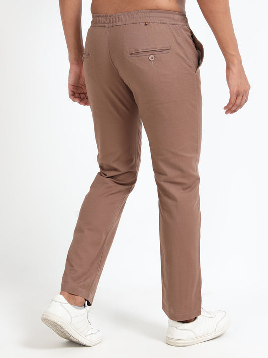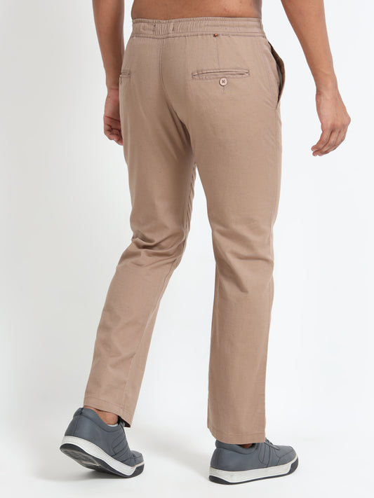 LINEN COTTON REGULAR FIT PANTS LIGHT BROWN