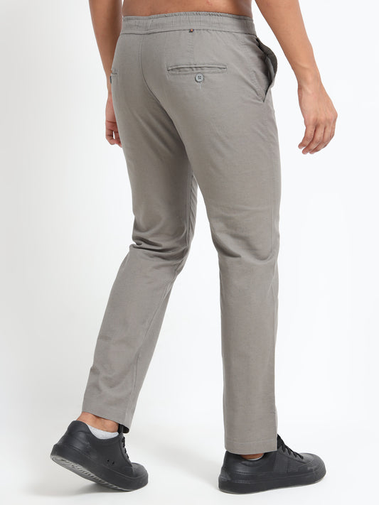 -47% OFFLINEN COTTON REGULAR FIT PANTS GREY
