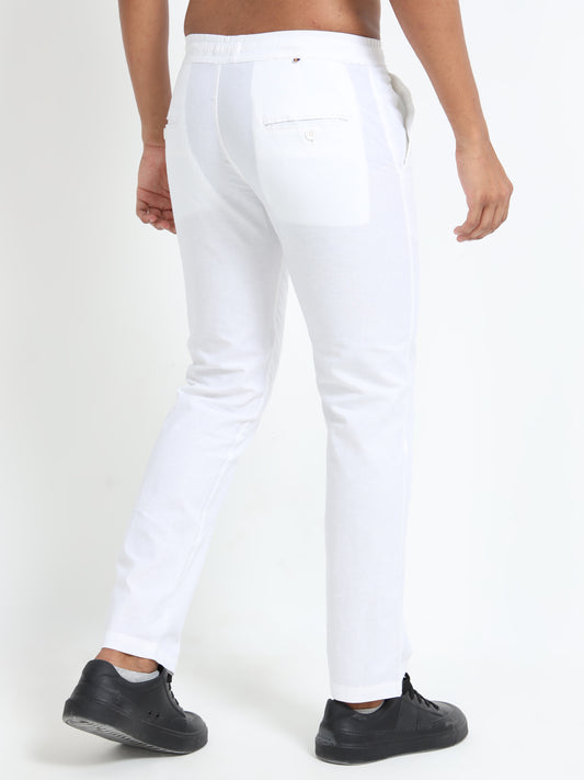 -47% OFFLINEN COTTON REGULAR FIT PANTS WHITE