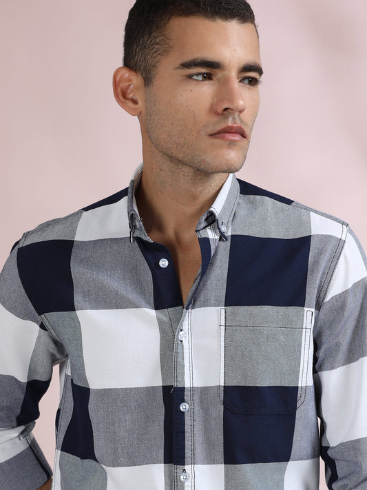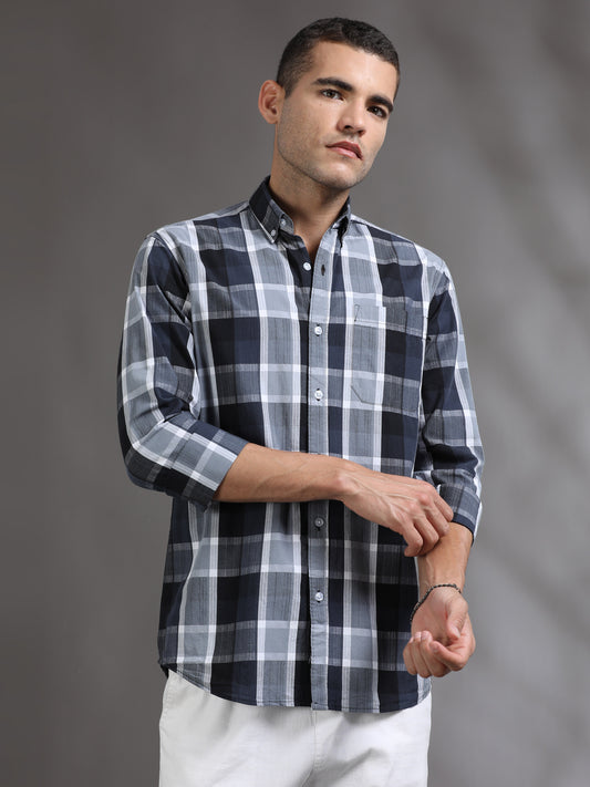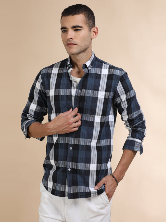 Baltic Sea Navy Blue Solid Dual Pocket Shirt