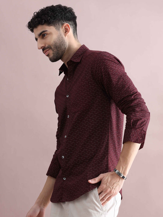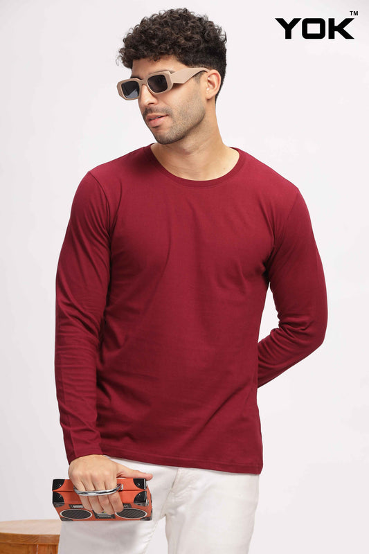 -14% OFFPlain burgundy Full Sleeves T-shirt