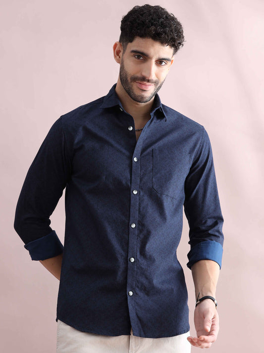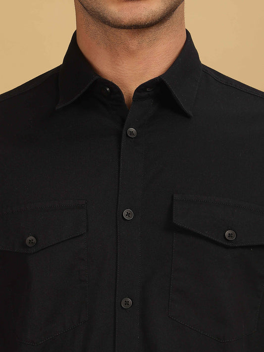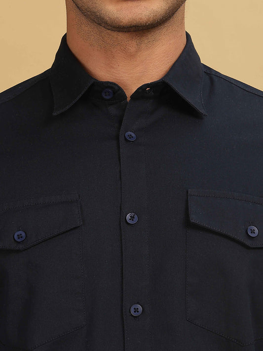 Baltic Sea Navy Blue Solid Dual Pocket Shirt