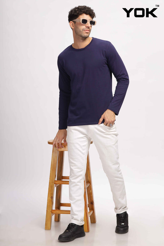 -14% OFFPlain navy blue Full Sleeves T-shirt