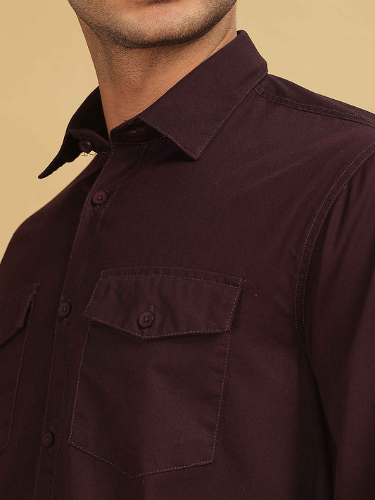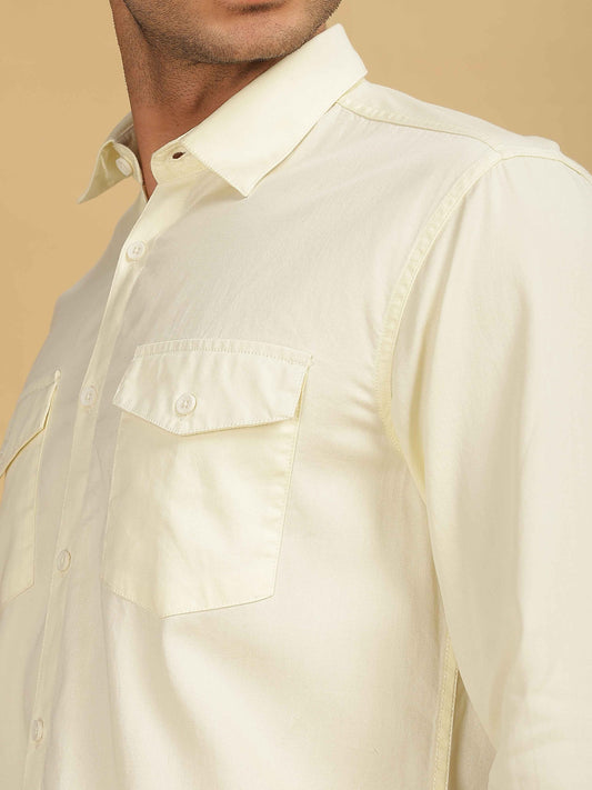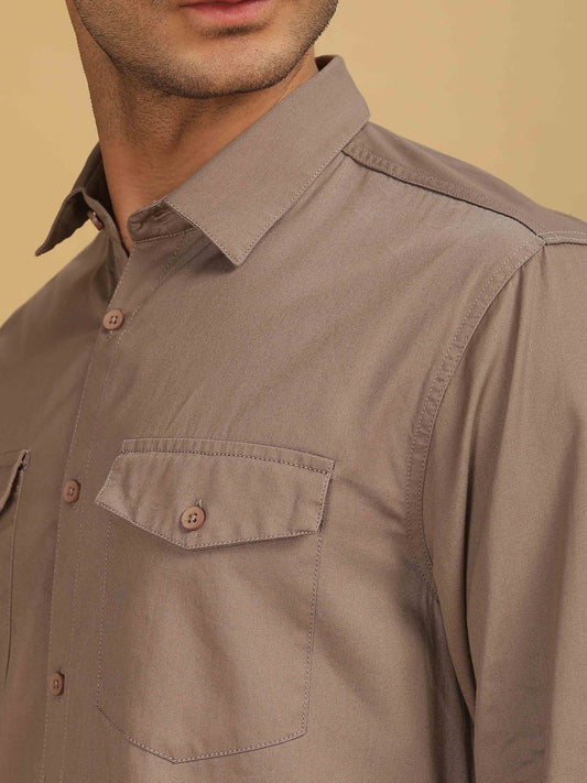 -53% OFFLight Brown Solid Dual Pocket Shirt
