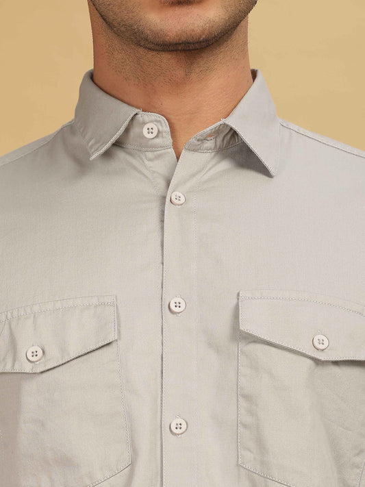 -53% OFFCloud Grey Solid Dual Pocket Shirt