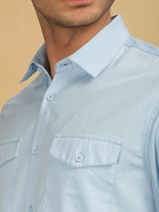 -53% OFFSkyblue Solid Dual Pocket Shirt