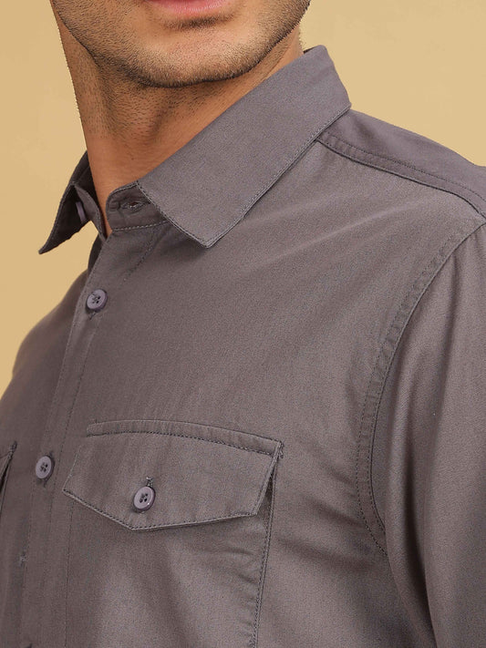 -53% OFFDark Grey Solid Dual Pocket Shirt