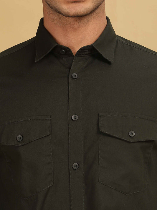 -53% OFFDark Olive Solid Dual Pocket Shirt
